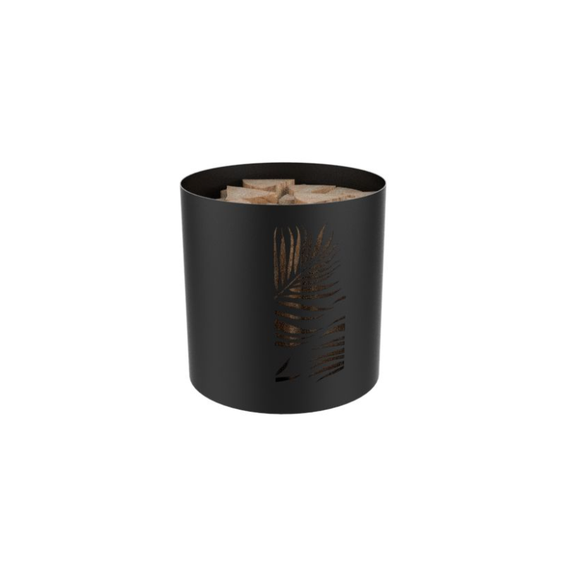 Le végétal s’impose dans les intérieurs, par ses motifs ou ses couleurs. Avec son motif de feuilles de palmier ciselées, le range-bûches Borneo s’affirme comme un objet déco à part entière à proximité du poêle.