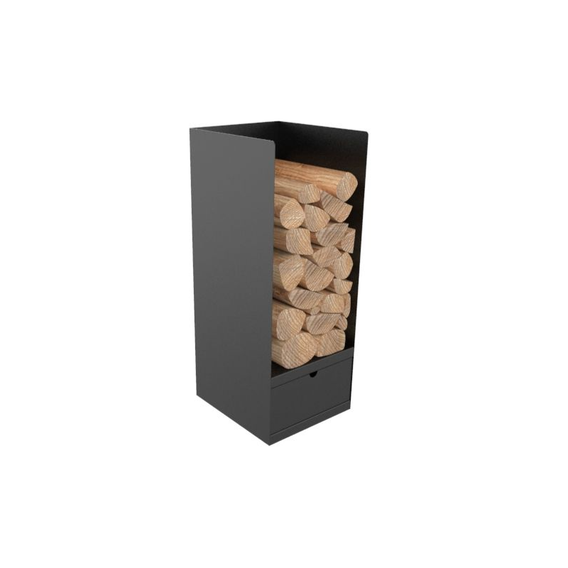 Son format vertical permet de stocker jusqu'à 20 bûches tout en limitant la place au sol.