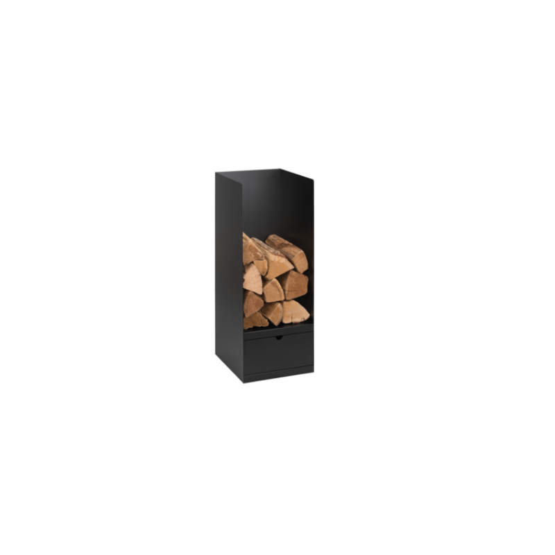Tiroir intégré pour faciliter le rangement des petits accessoires : allumettes, allume-feux, journaux, ou petit bois.