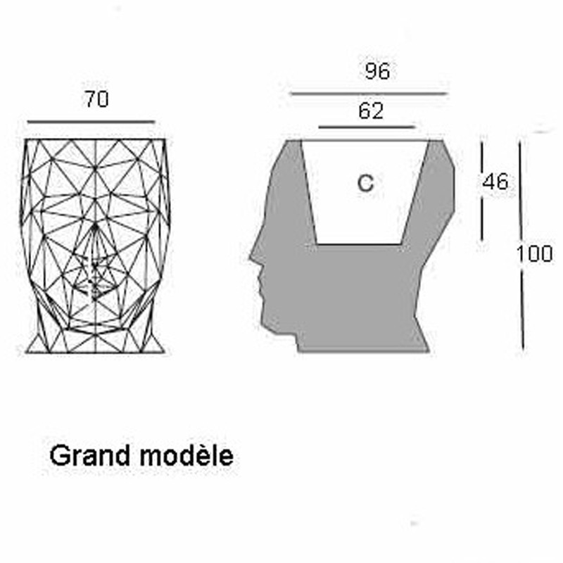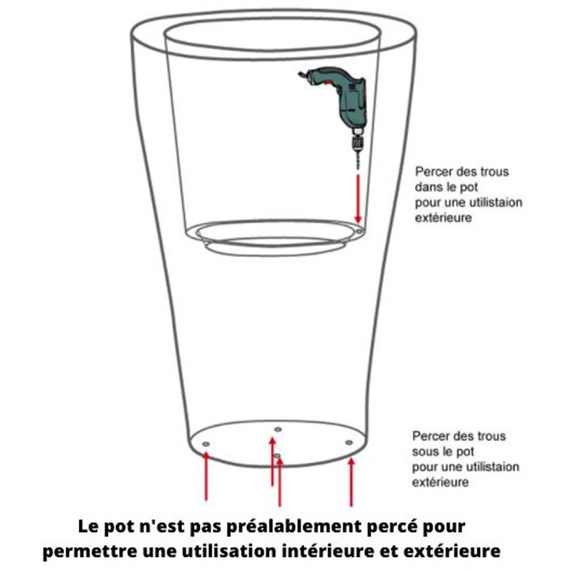 A savoir : Dimensions intérieures du pot : 62 x 57 x H 46 cm. Contenance : 75 litres. Convient pour une utilisation intérieure et extérieure (il suffit de percer des trous au fond du pot pour drainer l'eau de pluie, lors d'une utilisation extérieure). Haute résistance aux UV (Facteur UV8: 8000 heures d'ensoleillement en Floride). Haute résistance aux températures extrêmes : -60°C à +80°C. Haute résistance aux chocs et à la déformation. Existe en 14 coloris mats, en 15 coloris laqués brillants, en version simple paroi et double paroi, avec réserve d'eau, lumineux Led blanc, lumineux Led RGBW (éclairage multicolore) avec alimentation par batterie ou par câble électrique. Veuillez nous consulter.