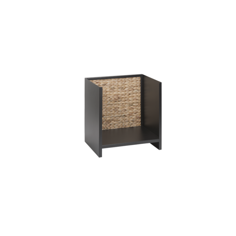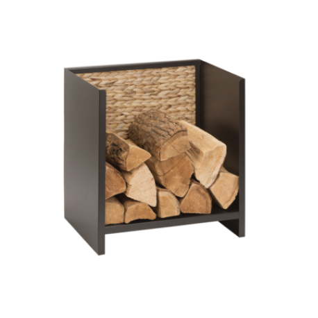 Son fond en jacinthe d'eau tressée apporte un brin de nature à proximité de votre poêle ou cheminée.