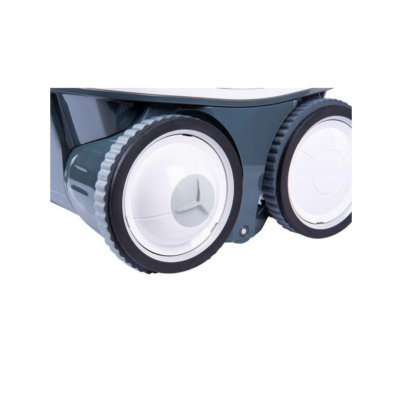 Avec ses quatre grandes roues, le robot Crytallic passe partout et se déplace aisément entre les jouets oubliés sur le fond par vos enfants. Un mode de déplacement simple et très robuste, parfait pour une piscine familiale.4 roues-brosses de nettoyage et 1 brosse rotative supplémentaire Les 4 roues-brosses délogent les saletés pour laisser la surface parfaitement propre. La brosse rotative supplémentaire assure un nettoyage impeccable du fond de la piscine.