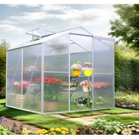 La serre de jardin a une structure résistante en aluminium et polycarbonate permet de protéger vos cultures de fruits et légumes des intempéries.