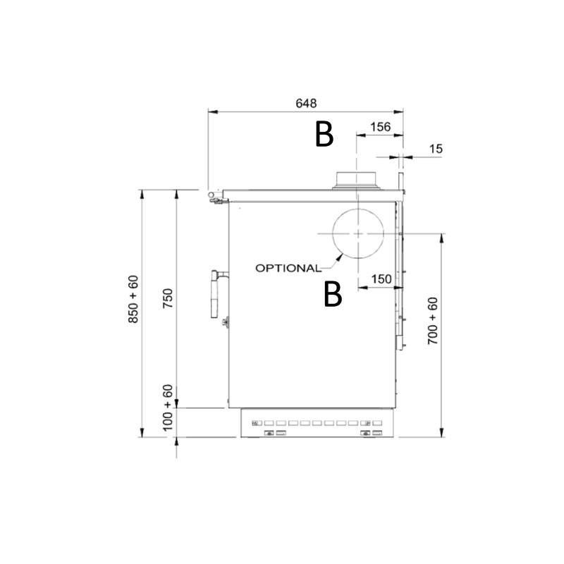 Con una potenza nominale di 8kW che permette di riscaldare circa 238m3. Bella vista sul fuoco e sui ceppi di legna fino a 25 cm.