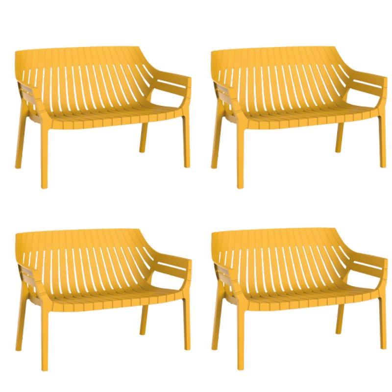 Vale a dire: sedia impilabile. Altezza del sedile: 40 cm. Lunghezza: 119cm. Profondità: 67cm. Uso interno ed esterno. Molto resistente ai raggi UV, all'acqua e alle intemperie. Disponibile in 5 colori opachi. Cuscino del sedile disponibile come opzione. Vi preghiamo di contattarci.