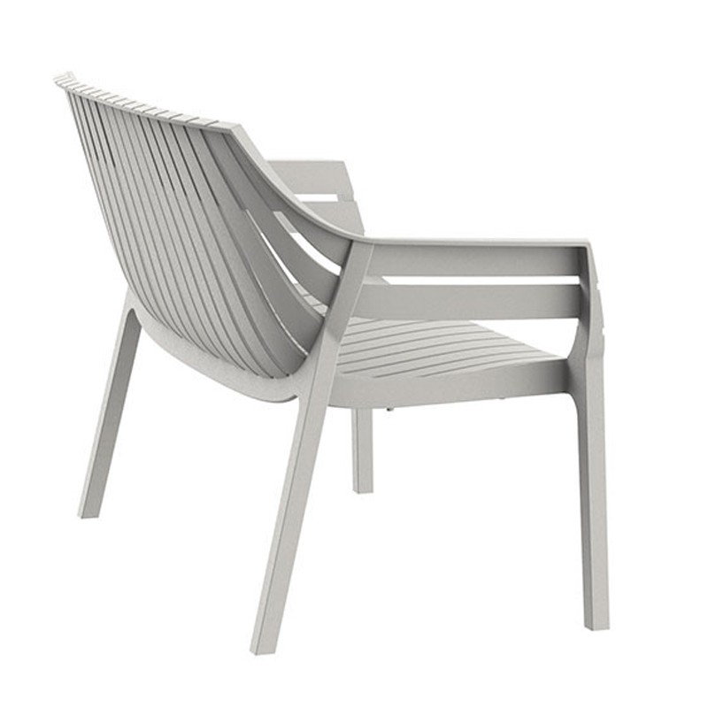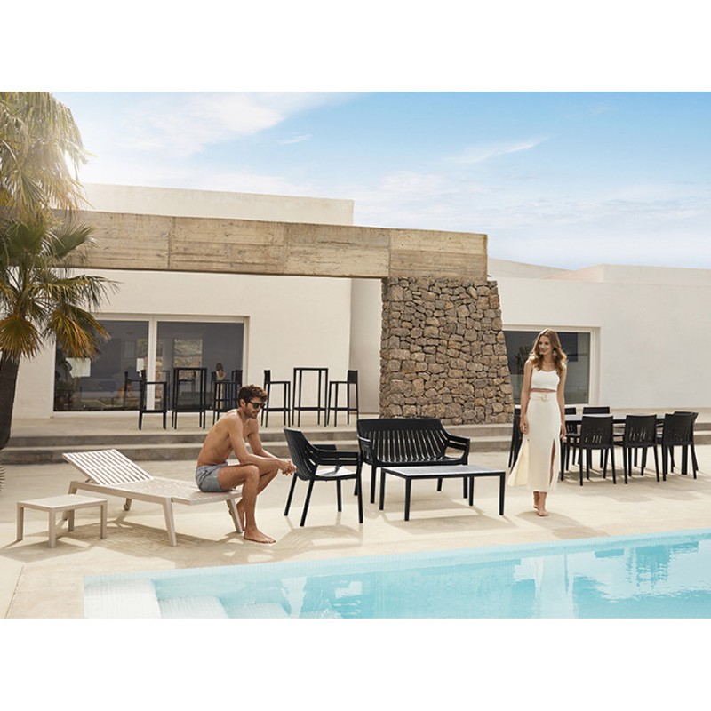 Vale a dire: sedia impilabile. Altezza del sedile: 40 cm. Lunghezza: 119cm. Profondità: 67cm. Uso interno ed esterno. Molto resistente ai raggi UV, all'acqua e alle intemperie. Disponibile in 5 colori opachi. Cuscino del sedile disponibile come opzione. Vi preghiamo di contattarci.