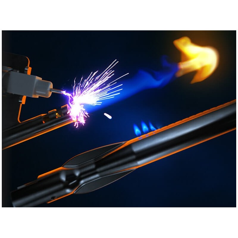 - ACCENSIONE JETFIRE®: accendi istantaneamente il tuo barbecue a gas Prestige® con il suo sistema di accensione senza batteria Questo sistema di accensione a prova di guasto proietta un getto di fiamma che accende immediatamente i bruciatori.