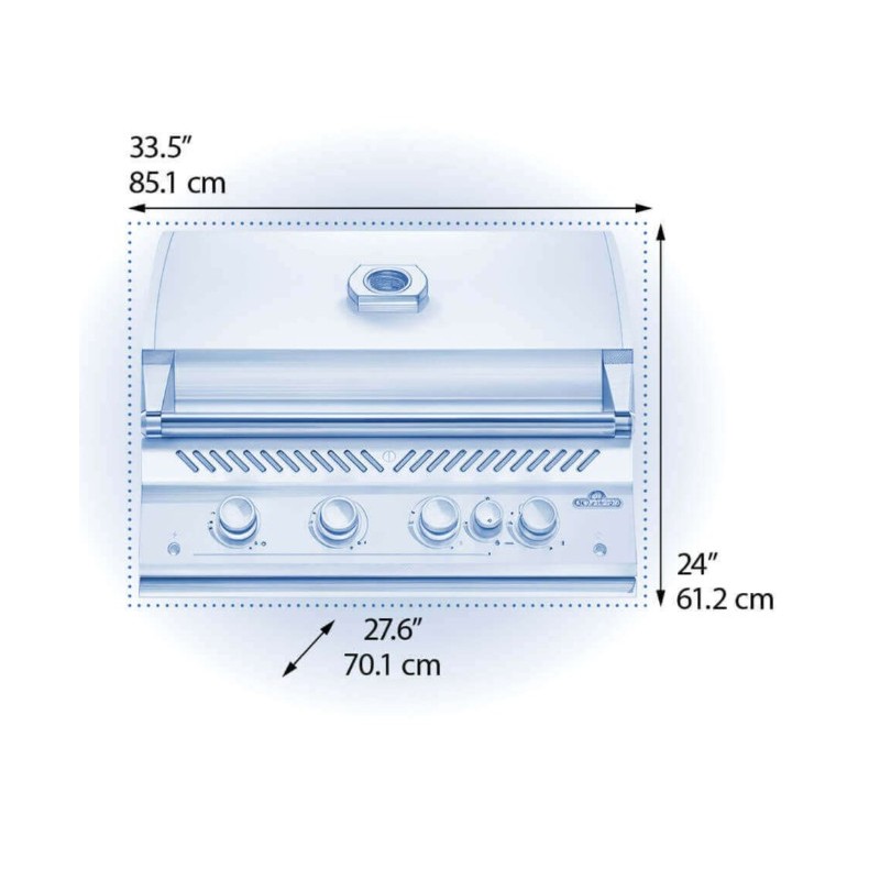 - Il grill a gas da incasso BIG32 da 32" è dotato di un bruciatore posteriore a infrarossi e di un kit girarrosto di livello commerciale per preparare pasti allo spiedo perfetti.