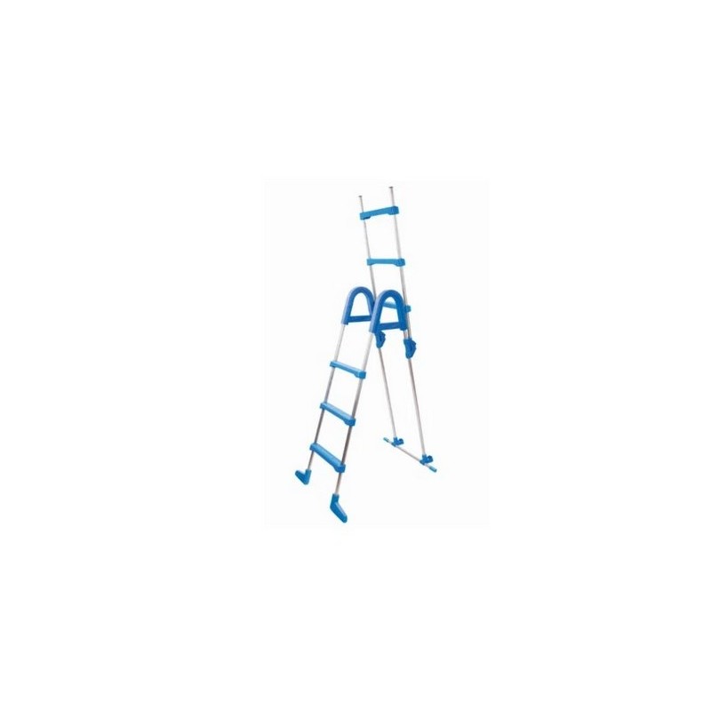 Scala: Scala di sicurezza. E' realizzato in acciaio zincato bianco con 3 gradini e frontale removibile. (Questo permette di smontare i gradini sul lato esterno in modo da impedire ai bambini di accedere alla piscina ed evitare incidenti).