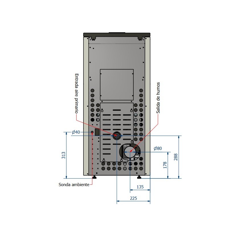 Consumo: 0,6 kg/h / 2,2 kg/h
