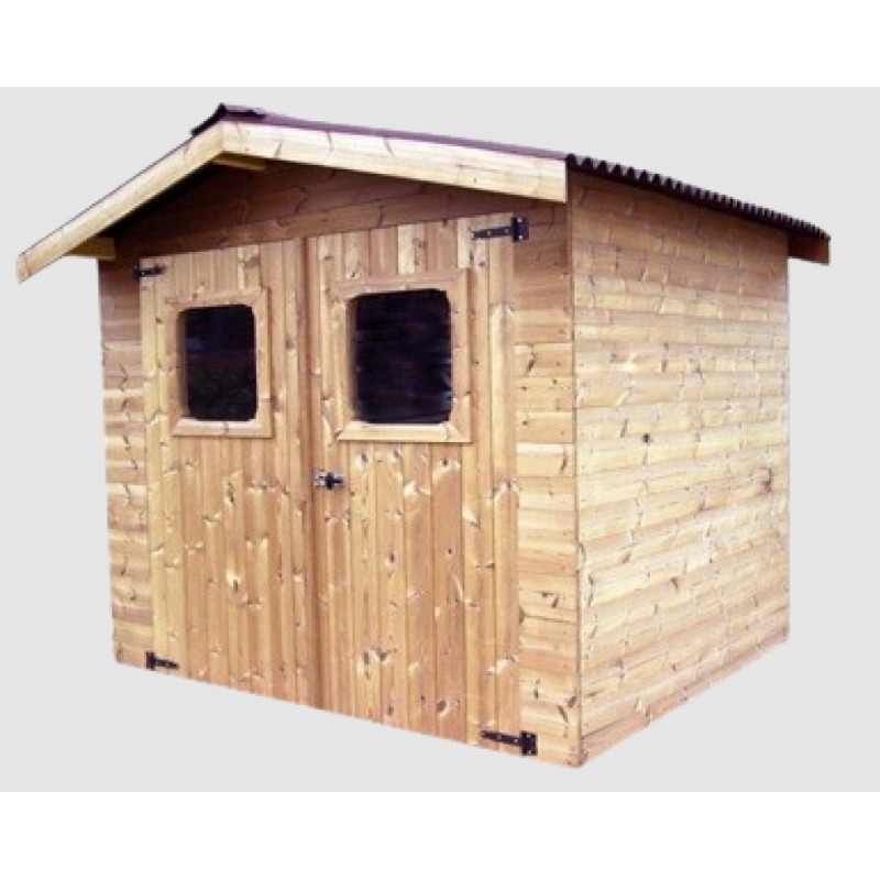 Il rifugio a doppia pendenza Thermabri è una casetta da giardino in legno di alta qualità realizzata con assi di legno massiccio con uno spessore di 28 mm.