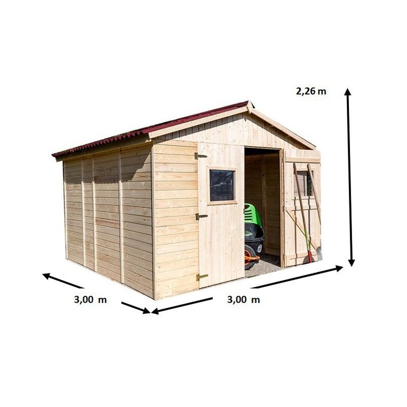 Questa casetta da giardino in legno viene consegnata in kit e dovrà essere assemblata da te. Con dimensioni esterne di 3 x 3 m, occuperà un'area di 9 m². Il suo spazio interno di 7,62 m² ti permetterà di armeggiare, conservare attrezzature da giardinaggio o qualsiasi altra attrezzatura esterna. Questa casetta da giardino è garantita per 2 anni.