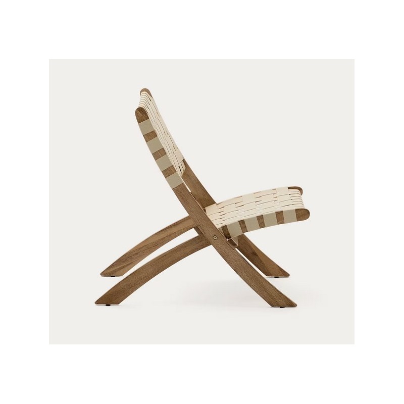 Poltrona pieghevole in legno massello di acacia e corda crema FSC.