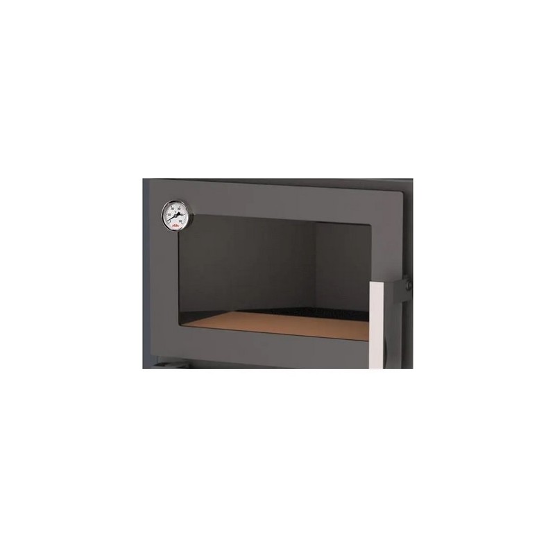 Volume riscaldato: 275m3- Efficienza 80% - Porta posacenere in ghisa e griglia - Camino in ghisa - Doppia combustione e sistema di vetro pulito - Porta in vetro ceramico resistente a 750 ° C. Dotato di forno e termometro.