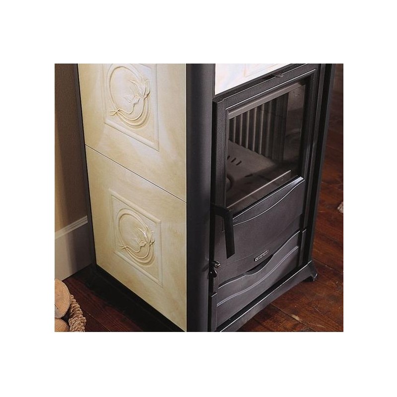 Porta resistente al momento : Le porte della stufa, realizzate in ghisa, sono inalterabili nel tempo e garantiscono una tenuta costante.