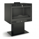 La stufa a legna Ferlux Afar da 15,9 kW in ghisa con porta in vetro e piedistallo centrale si adatta perfettamente a qualsiasi interno e crea un'atmosfera calda e accogliente fino a 323m3.
