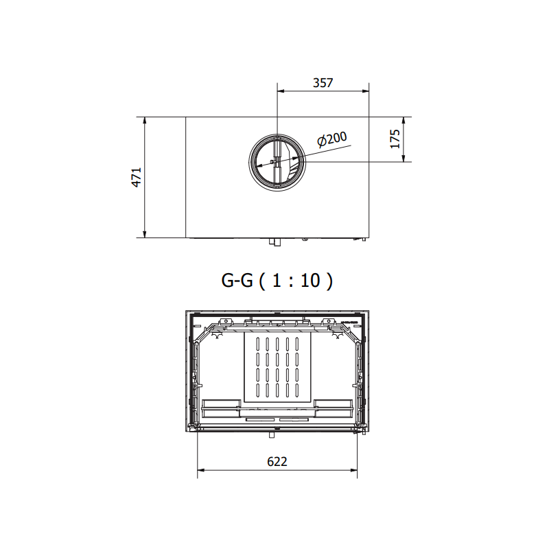- Dotato di focolare e porta in ghisa, due ventole, un interruttore della luce e un termostato