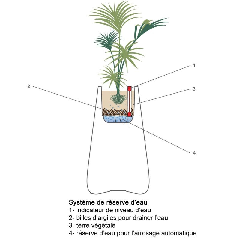 Vale a dire: Modello proposto con doppia parete Esiste in 10 colori: bianco, nero, bronzo, grigio chiaro, antracite, rosso, verde pistacchio, arancione, rosa, champagne (colore champagne disponibile solo in finitura laccata). Disponibile anche nella versione con sistema di autoriferimento (autonomia fino a 3 mesi), laccato lucido, luminoso, LED. Prezzo su richiesta Dimensioni interne dei vasi: - Modello grande: 62 x 57 x H 46 cm - Modello medio: 43 x 39 x H 28 cm - Modello piccolo: 30 x 24 x H 14,2 cm.