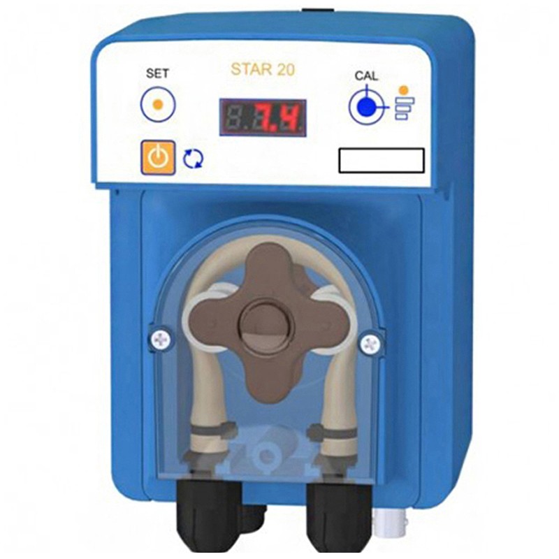 The Star 20 pH dosing pump is specially designed for the injection of acid pH corrector. Star 20 pH regulates proportionally pH-, ideal with the installation of a salt electrolyror for 100% automated disinfection.