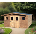 Galpão de jardim Habrita Thermabri feito de madeira maciça 15,14 m2 com telhado de aço.