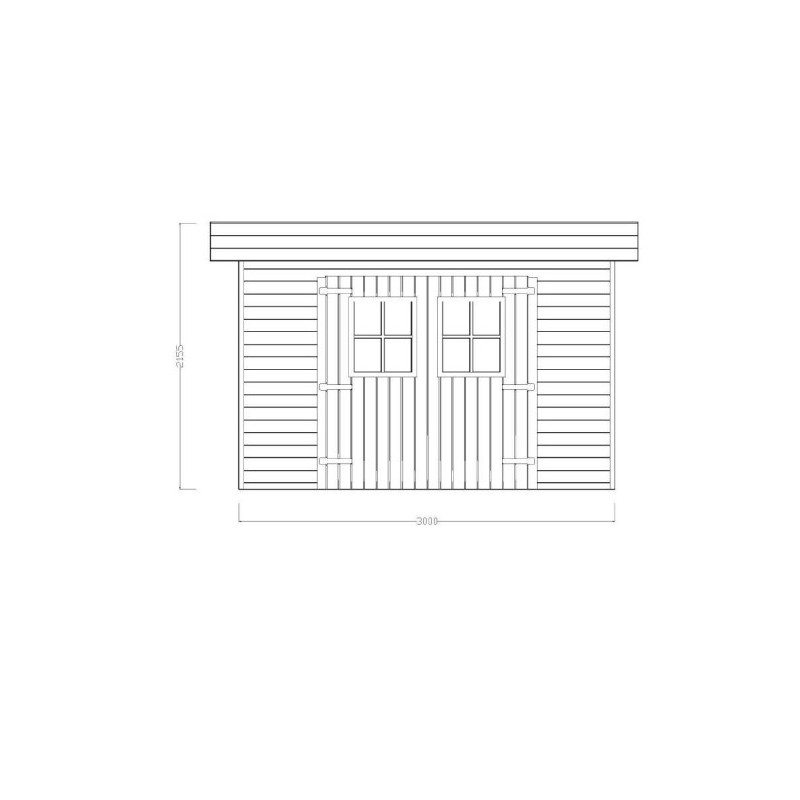 Galpão de jardim de madeira de 14,75m² em madeira spruce sólida e telhado plano em aço Habrita.