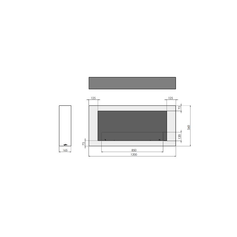 A lareira a bioetanol Murall 1200, sem duto com 1 janela, pode ser instalada suspensa na parede.