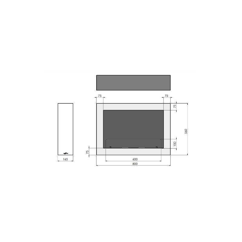 A lareira a bioetanol Murall 800, sem duto com 1 painel de vidro, pode ser instalada suspensa a partir da parede.