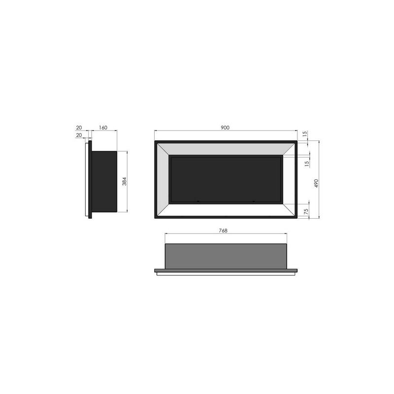 Lareira a bioetanol SIMPLEfire Moldura 900 preto com 1 painel de vidro.