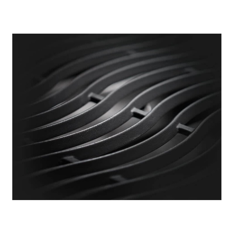 A grelha de ferro fundido esmaltado Wave Distribui uniformemente, deixando bons vestígios de cozimento em sua comida.