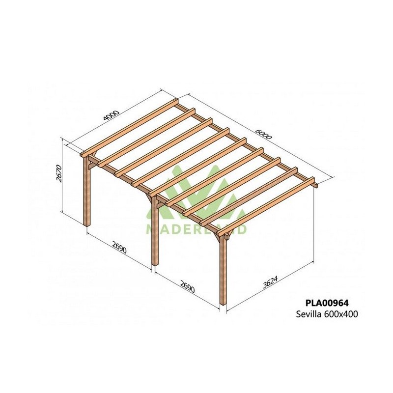 Sevilla 6x4m 24m2 Pergolado de parede de madeira crua