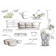 Material: Espuma de poliuretano. Tecido feliz em polipropileno macio. Estrutura de aço tratada por cataforese e pés de alumínio.